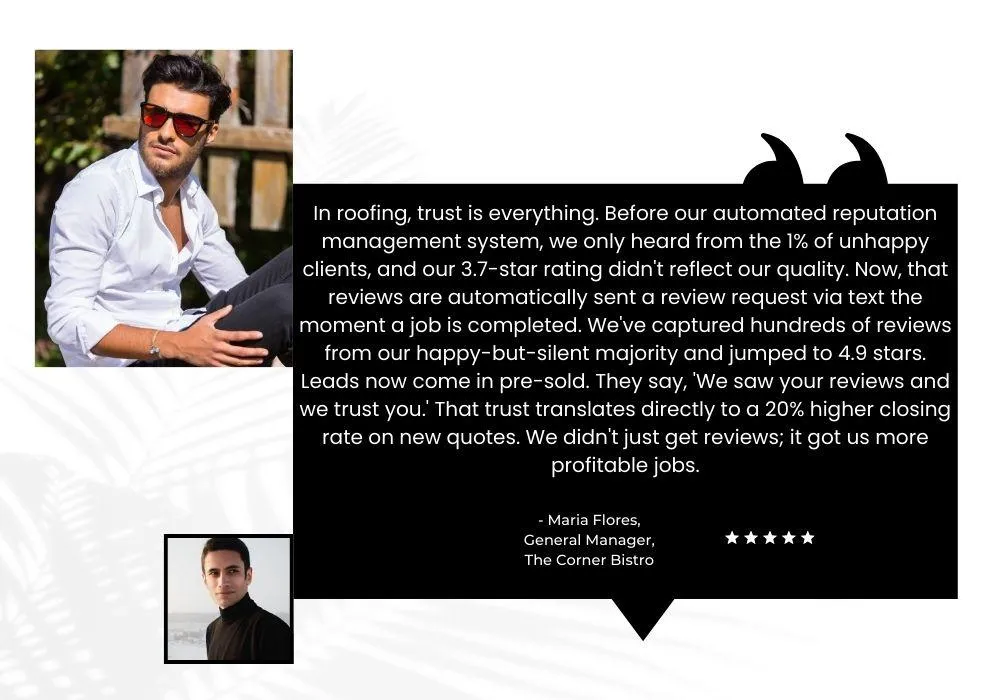 POS-Triggered Review Requests: Integrated with their point-of-sale system to automatically send a friendly SMS review request 2 hours after a customer pays their bill.