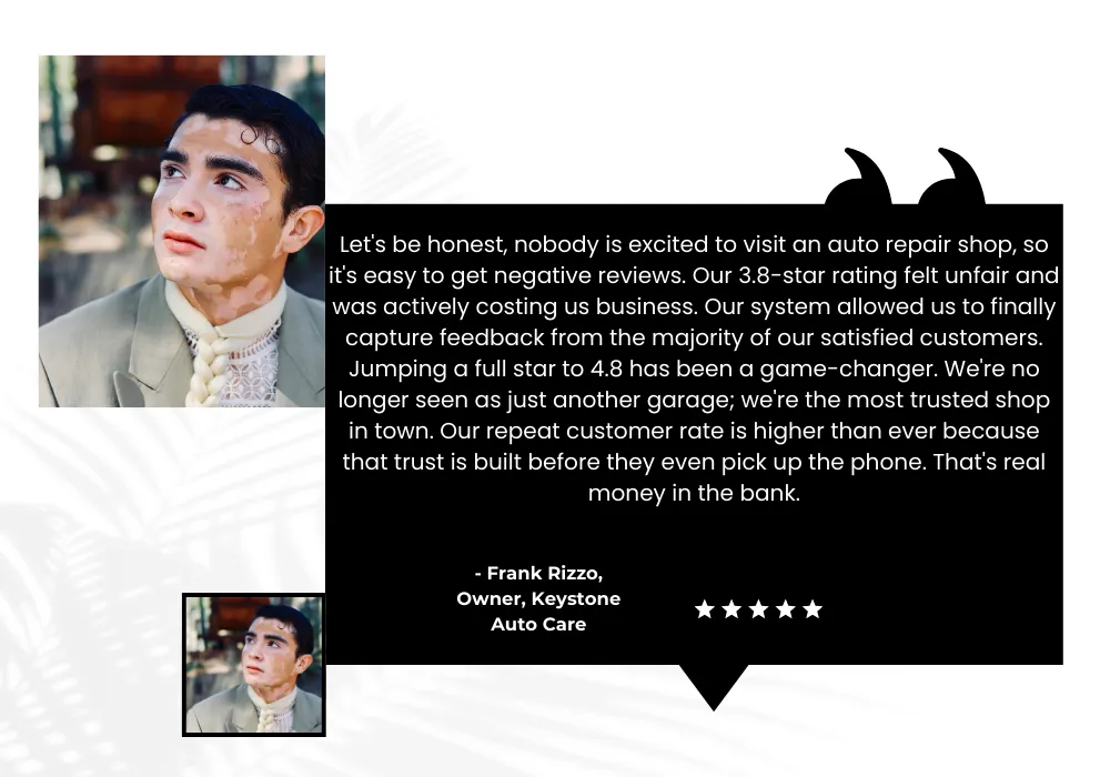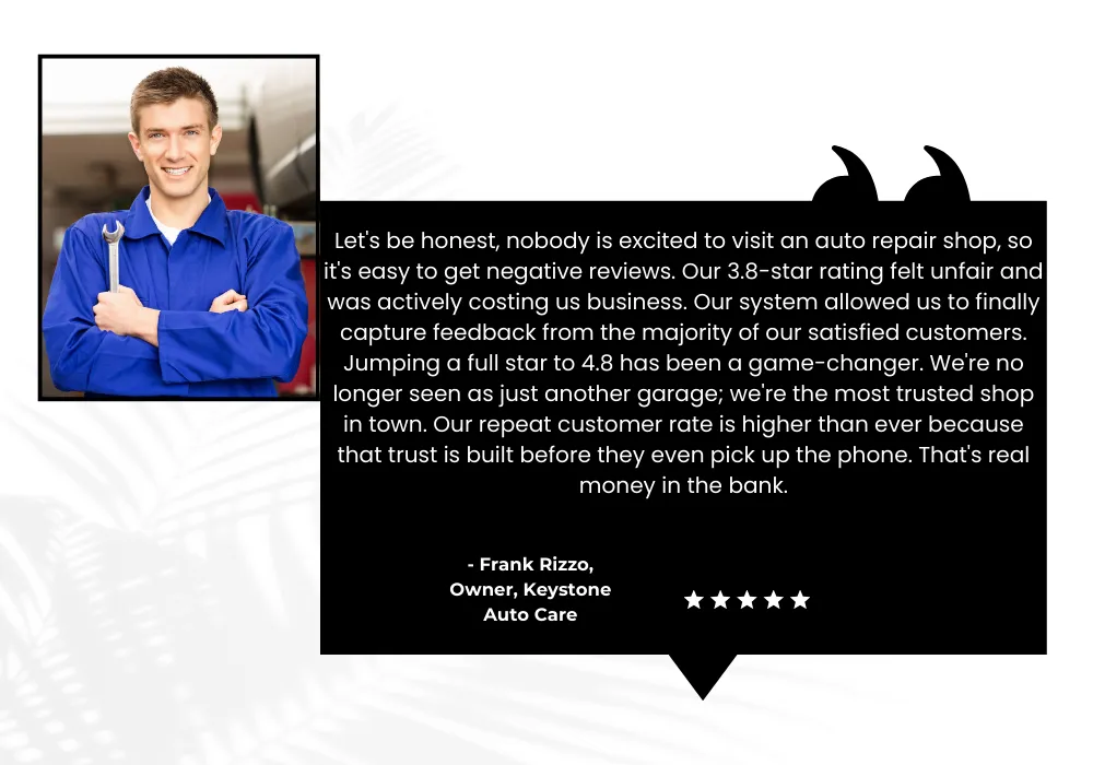 Technician-Specific Attribution: Review requests included hidden fields to track which technician performed the service, allowing for internal performance tracking.