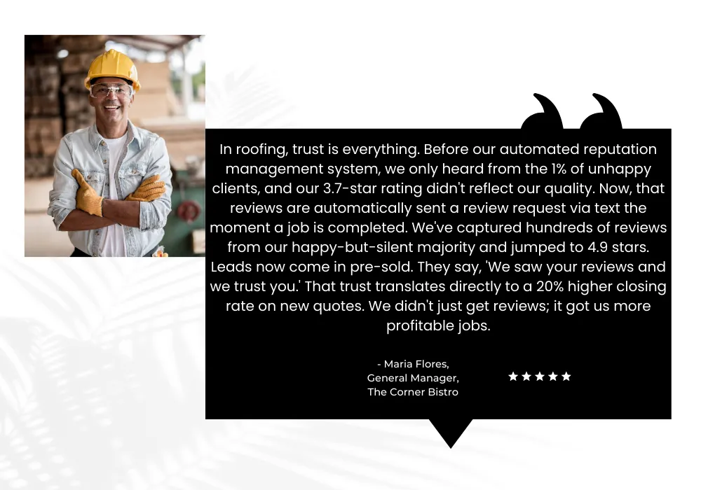A local HVAC and plumbing company faced intense competition. They relied on word-of-mouth but were losing business to competitors with stronger online review profiles, making it difficult to win high-value installation jobs.